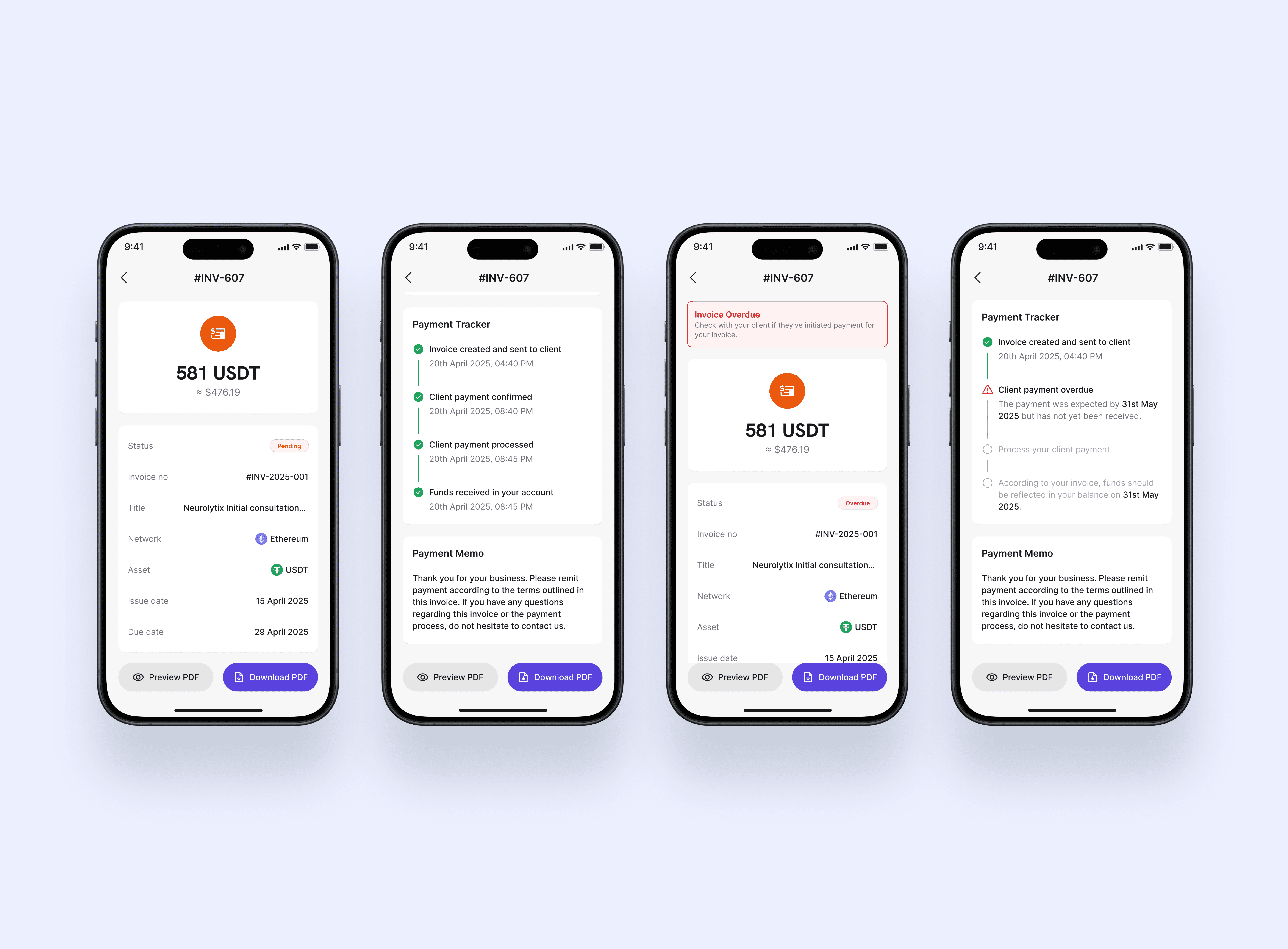 Real-Time Status: Leveraging blockchain immutability to show live updates from Viewed to Processing to Settled, eliminating the need to chase clients.